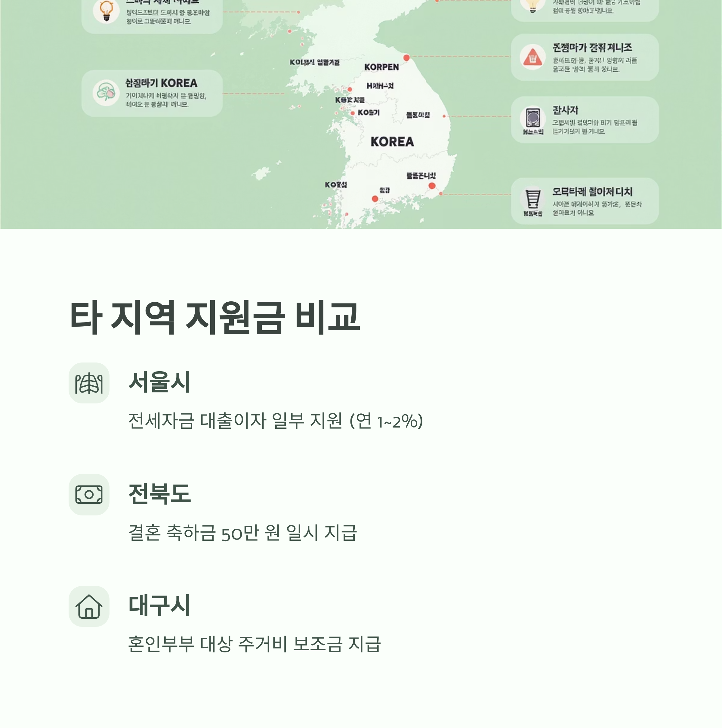 - 전북도: 결혼 축하금 50만 원 일시 지급