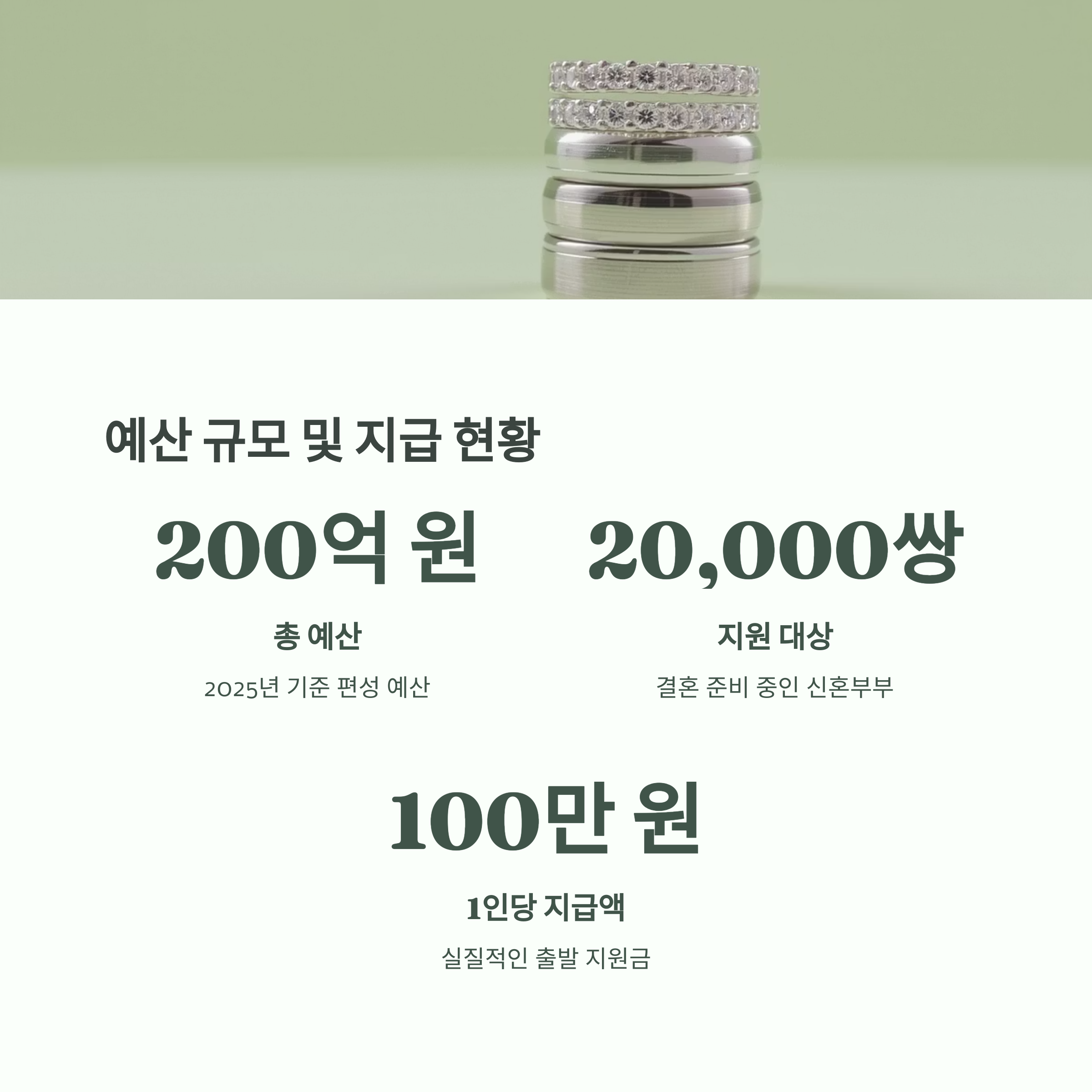 2025년 기준으로 경기도는 해당 제도에 약 200억 원 이상의 예산을 편성했어요. 결혼을 준비 중인 신혼부부 약 2만 가구를 대상으로 한다고 하니, 규모가 꽤 큽니다. 특히 지자체 단위에서 이렇게 큰 액수를 투입한 건 상당히 이례적인 일이라고 볼 수 있죠.